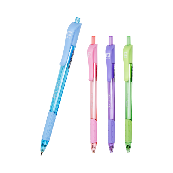 – ดีไซน์ตัวด้ามโปร่งสีสันสดใส ปุ่มกดและคลิปสีเดียวกับด้าม